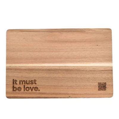 It must be Love rectangular cheese board an attractive item made in acacia wood with attractive wording.