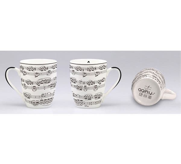 Discover this exquisite white bone china mug adorned with intricate piano music motifs, making it the perfect gift for musicians