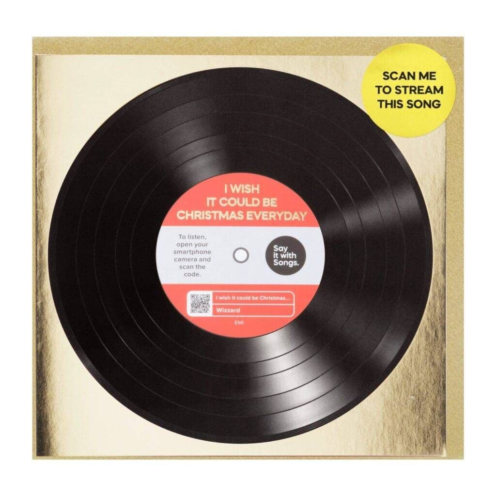 Wizzard “I Wish It Could Be Christmas Everyday” card with a QR code on the reverse so that you can hear this tune instantly.